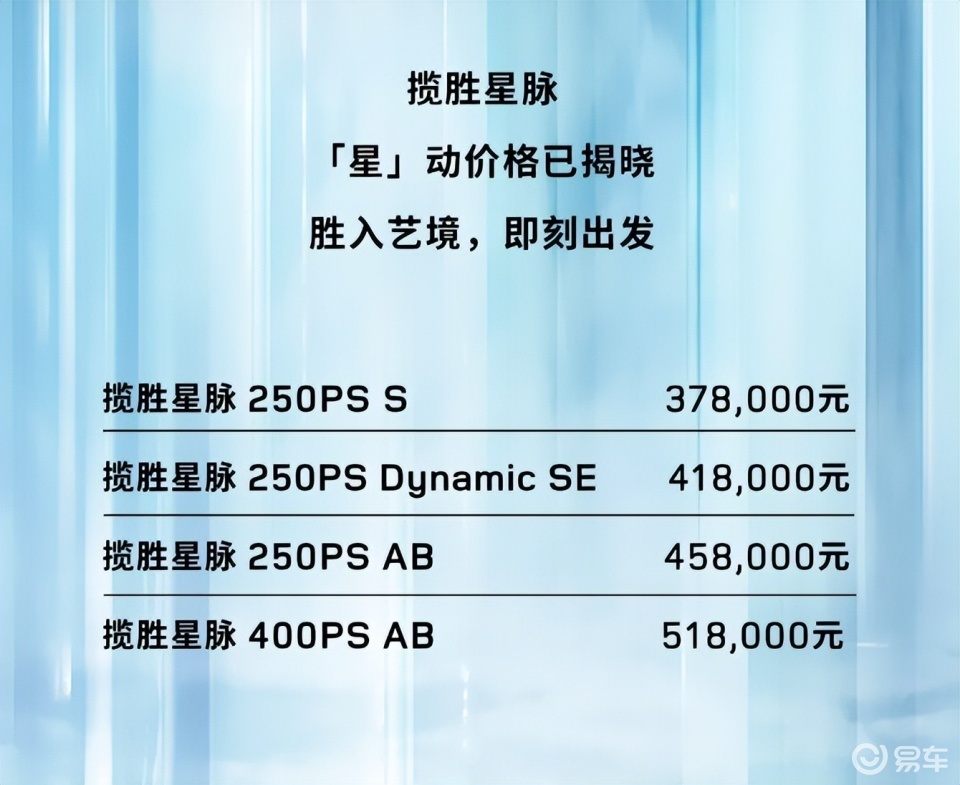 在路虎的官号上,可以看到揽胜星脉新车有4款,分别是250PS S和250PS Dynamic SE以及250PS AB和400PS AB四个版本,售价分别为37.8、41.8、45.8、51.8万。